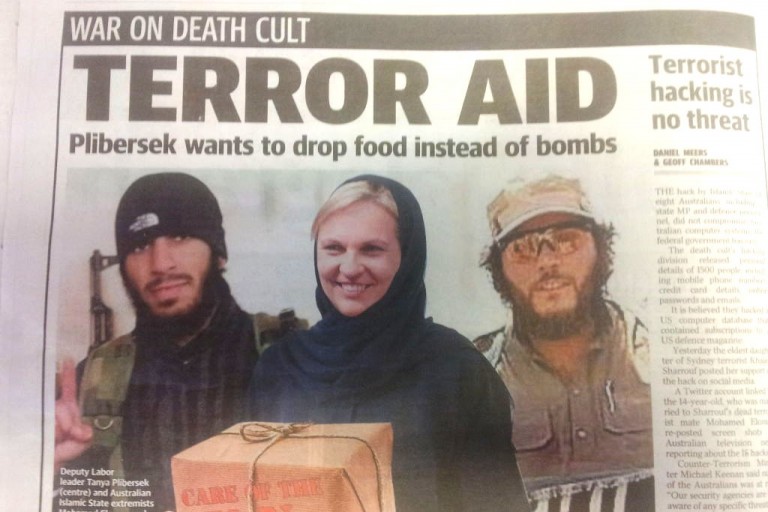 Even just recently, the Daily Telegraph (ok, yes another News Limited publication, I’ll hit up the lefties soon, don’t worry) photoshopped a picture of deputy opposition leader and shadow Foreign Affairs Minister Tanya Plibersek in a hijab and surrounded by known Australian’s fighting in Syria and Iraq for ISIS.